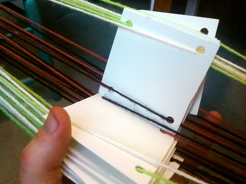 I've learned to warp tablets very much by trial and error, so I expect there are many improvements possible (please let me know), but as I had to warp a load of tablet looms for the weavecoding workshop in Düsseldorf last week, I thought I'd document the process here.