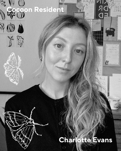 Charlotte Evans (she/her) is a Creative Designer from Cornwall. She established her creative design studio 'The Old Brick Studio' in 2020. Whilst still working under this studio which specialises in event and brand illustrations, her painting background has led her to look for ways to re-introduce a more hand led practice into her career path.
