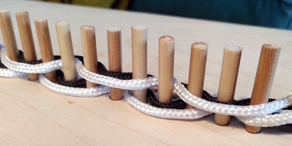 Testing a version of the tablet weave demonstrator, as described by Peter Collingwood in The Techniques of Tablet Weaving.